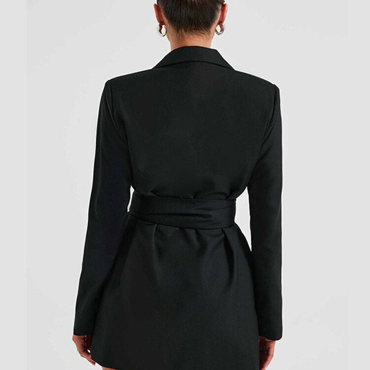 Schwarzes Blazerkleid mit V-Ausschnitt