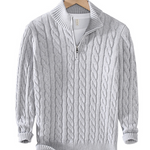 Zopfmuster - Strickpullover mit Halbem Reißverschluss