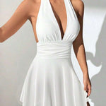 • Design: Halterneck mit tiefem Ausschnitt und ausgestelltem Saum