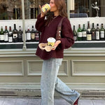 Damen Pullover Bordeaux – Warmer Strickpullover mit Rundhals