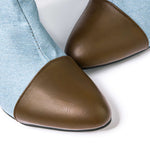 Die Chloe Denim Boots bringen ikonischen Denim-Charme in Ihre Schuhsammlung. Das knielange Design aus hellblauem Jeansstoff kombiniert mit eleganten braunen Kontrastdetails und einem schmalen Absatz macht diesen Stiefel zum perfekten It-Piece für Fashion-Liebhaberinnen. Ob lässig mit Oversized-Hemd oder chic mit Midikleid – Chloe sorgt für den perfekten Stilbruch und verleiht jedem Look das gewisse Etwas.
